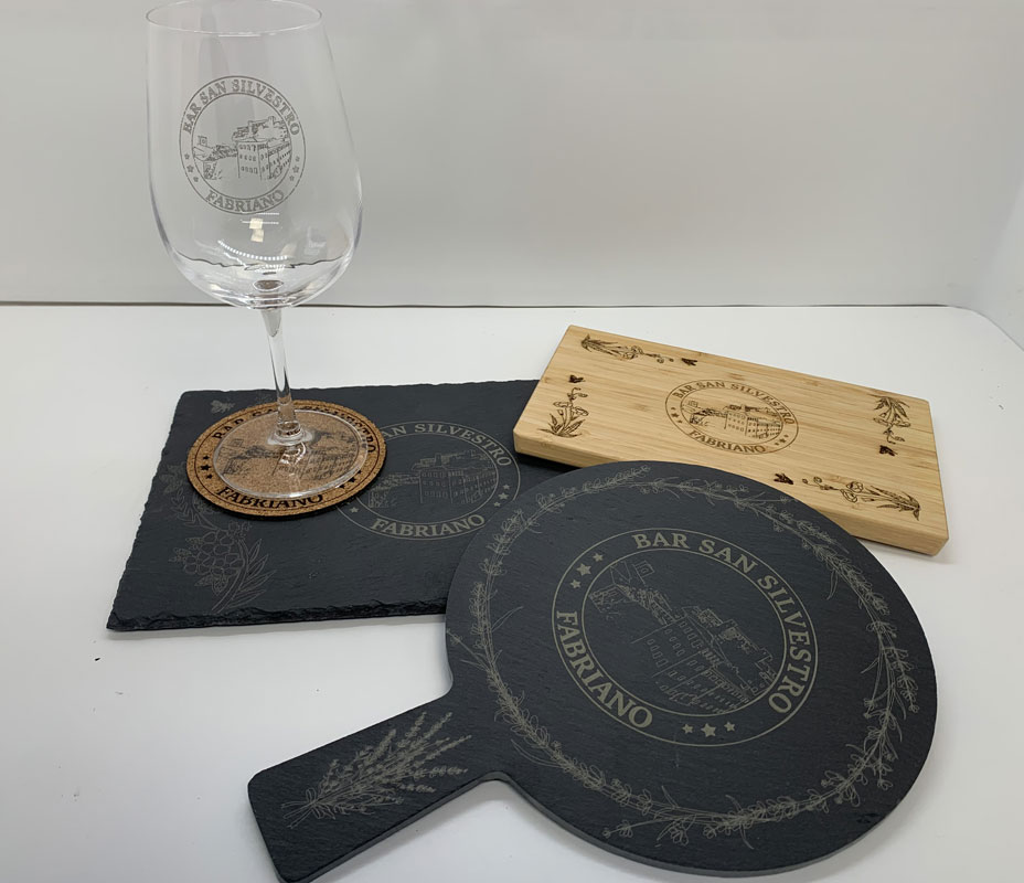 Siamo in grado di lavorare su una vasta gamma di prodotti e materiali per soddisfare le esigenze specifiche dei nostri clienti, tra i materiali che trattiamo rientrano calici e bicchieri in vetro, taglieri in legno o ardesia, carta, cartone, PVC e molti altri ancora.